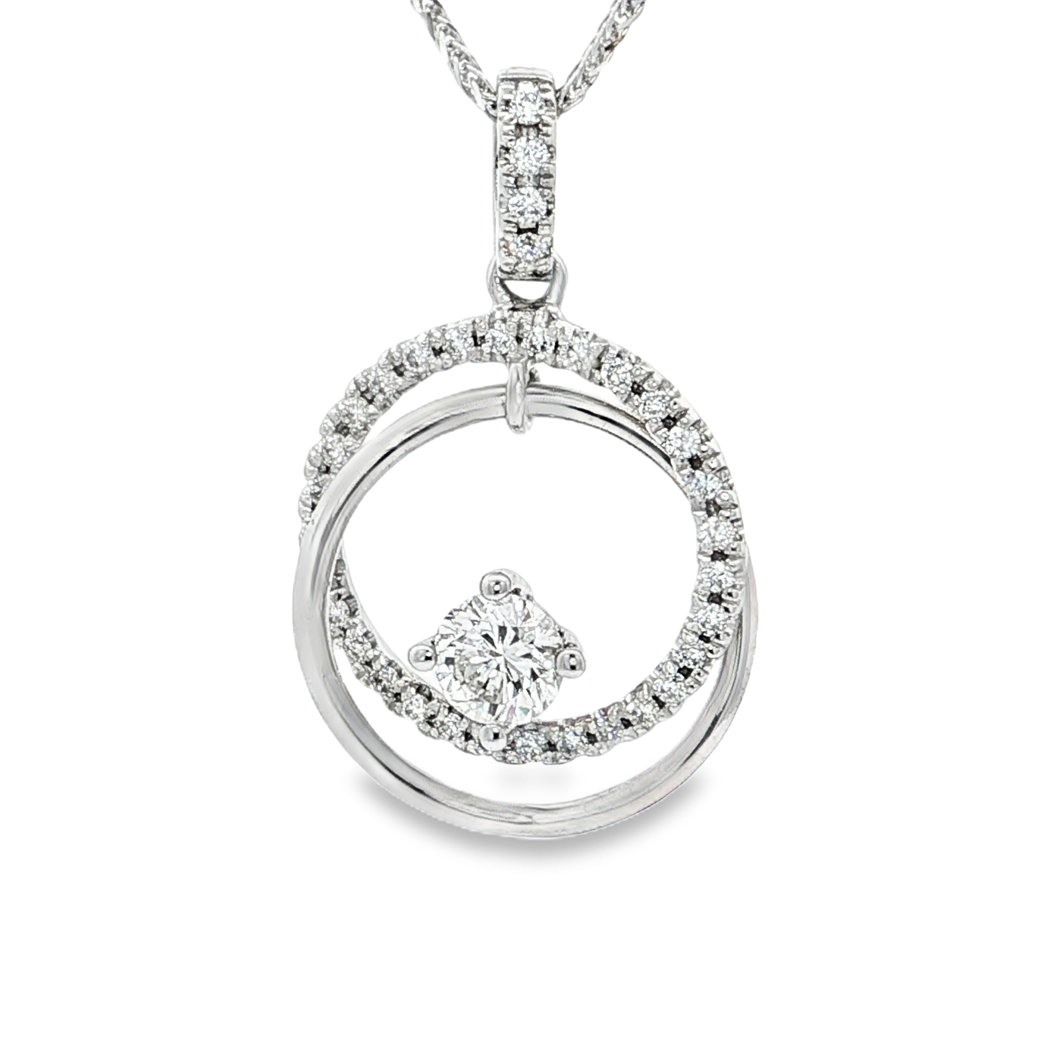 18K白色黃金天然鑽石吊墜