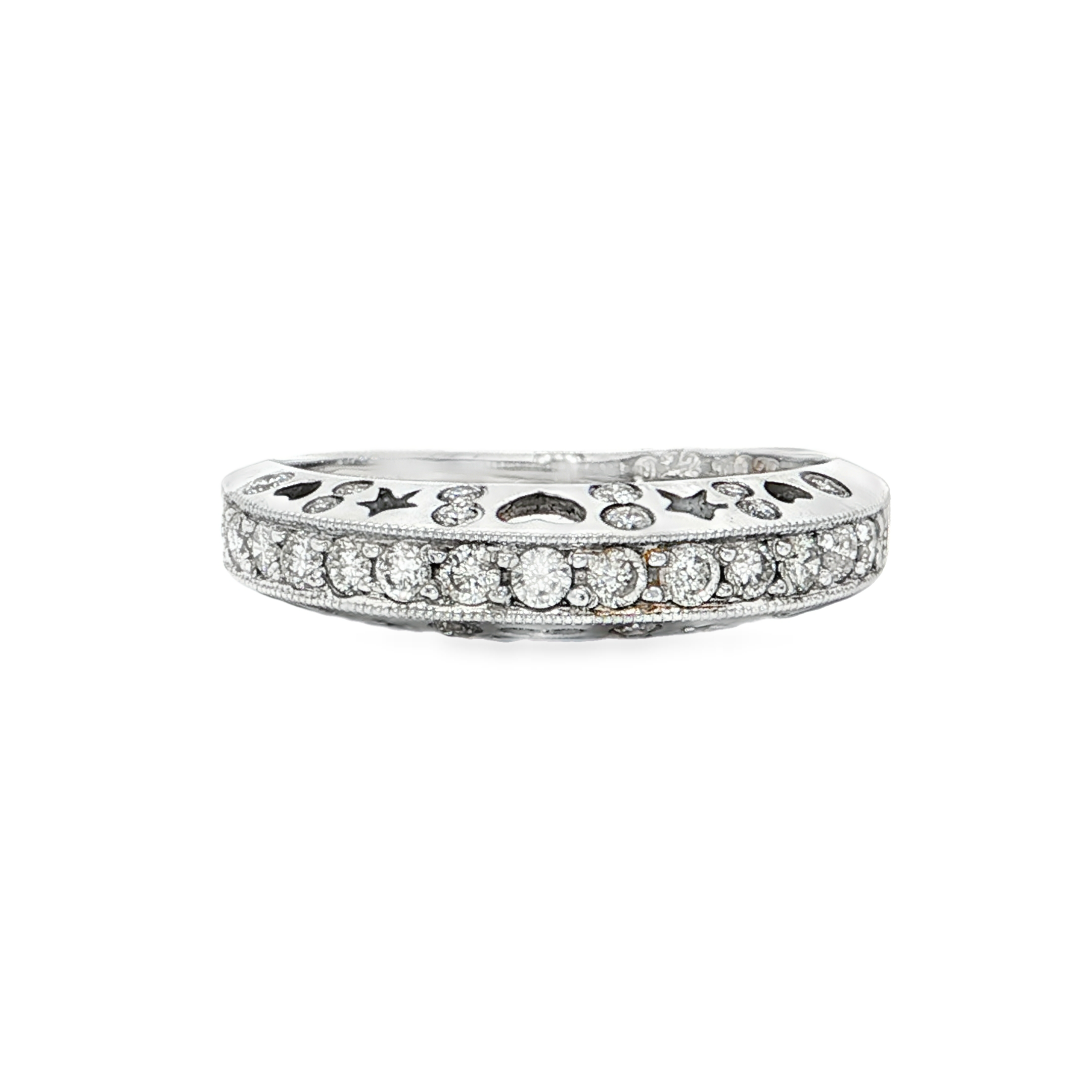 這款精緻的18K白金鑽石戒指,採用永恆的圓形明亮式切割鑽石,完美展現其卓越的火彩與閃耀。戒指的精湛工藝體現在其對稱性和拋光度上,確保每一顆鑽石都能夠充分展現其獨特魅力。這款戒指不僅是愛情的象徵,更是品味與優雅的完美結合。