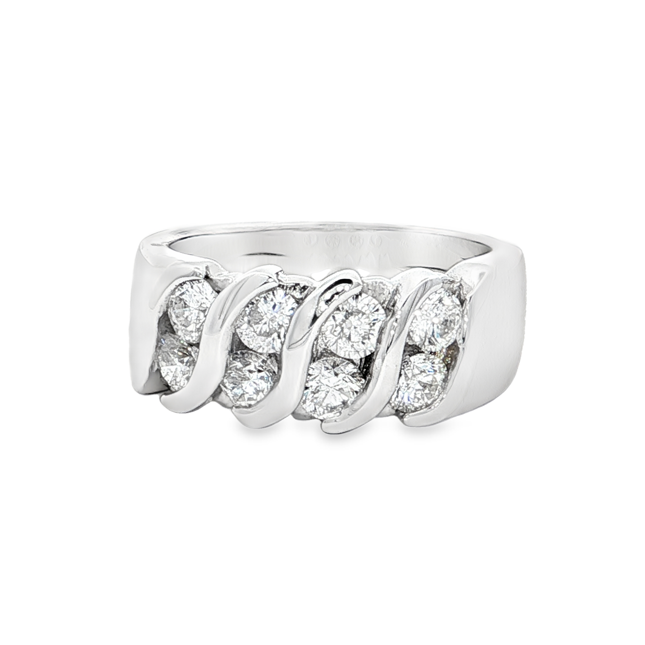這款精緻的18K白金戒指鑲嵌多顆圓形明亮式切割鑽石,呈現出璀璨奪目的光芒。簡約而現代的設計,完美襯托鑽石的火彩,適合日常佩戴,盡顯優雅品味。白金材質更增添了戒指的質感與耐用性,是您珠寶收藏的理想之選。