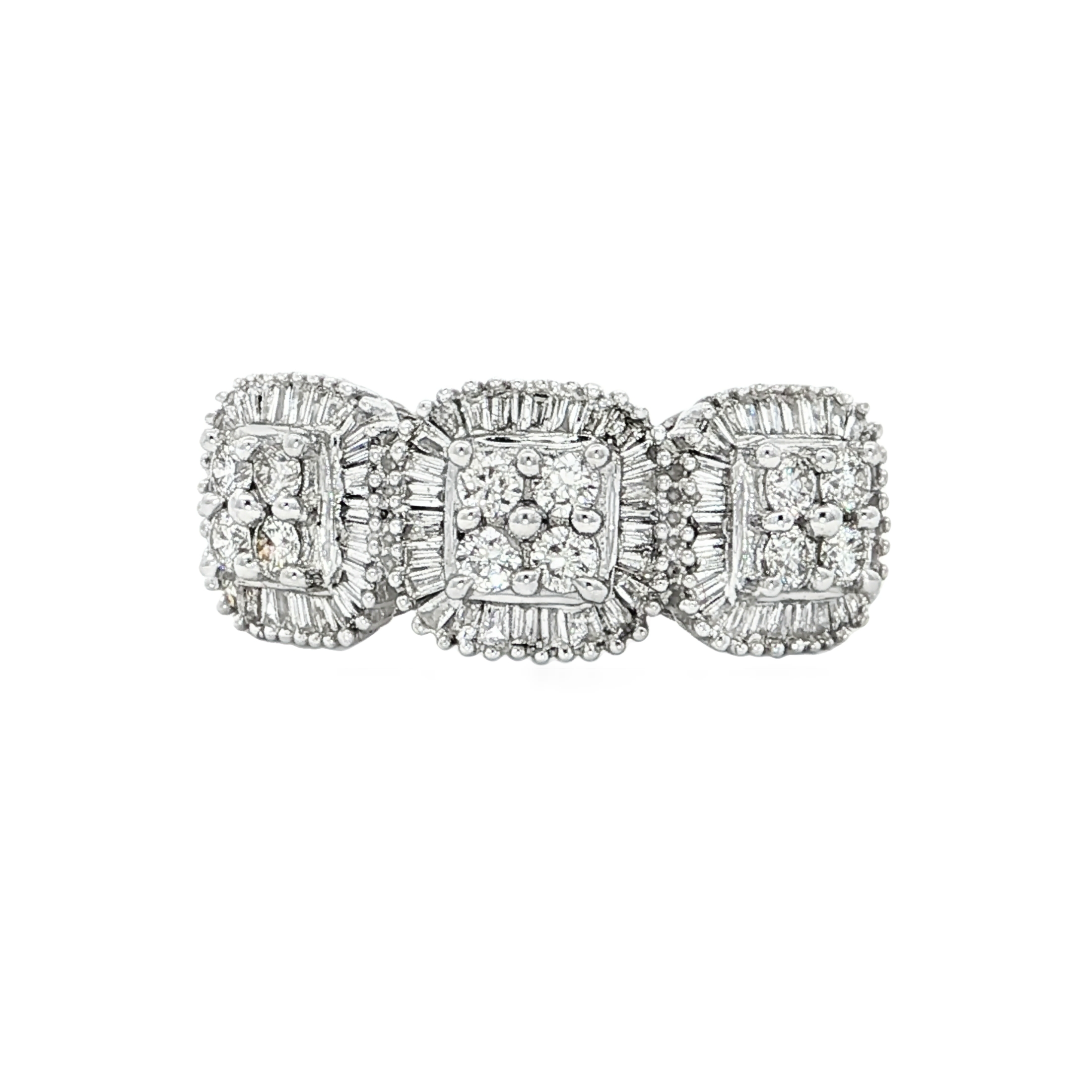 這款多石戒指以精湛工藝打造,採用優雅的18K白金底座,鑲嵌多顆方形明亮式切割鑽石,呈現出璀璨奪目的光芒。鑽石的排列精巧,營造出華麗的視覺效果,適合在各種場合佩戴,盡顯您的獨特品味。
