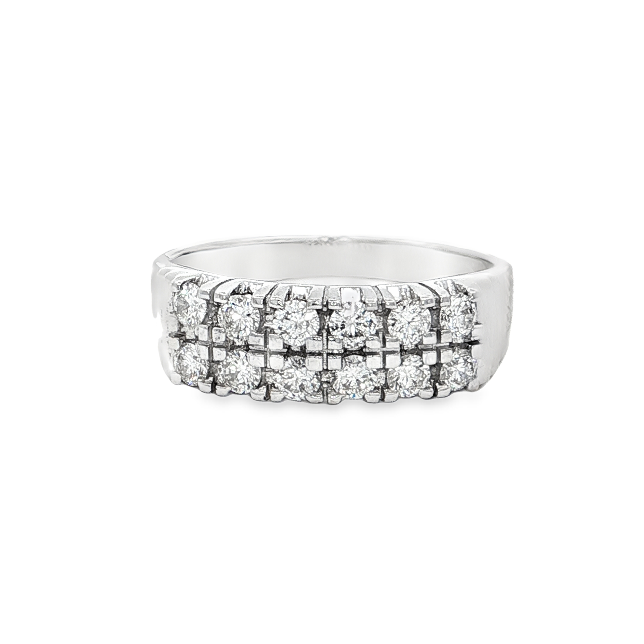 這款精美的多石戒指採用優雅的18K白金材質,鑲嵌多顆明亮式切割圓形鑽石,光彩奪目。鑽石排列精巧,呈現出和諧的視覺效果,散發出高貴典雅的氣息。適合日常佩戴,亦是特殊場合的完美點綴。