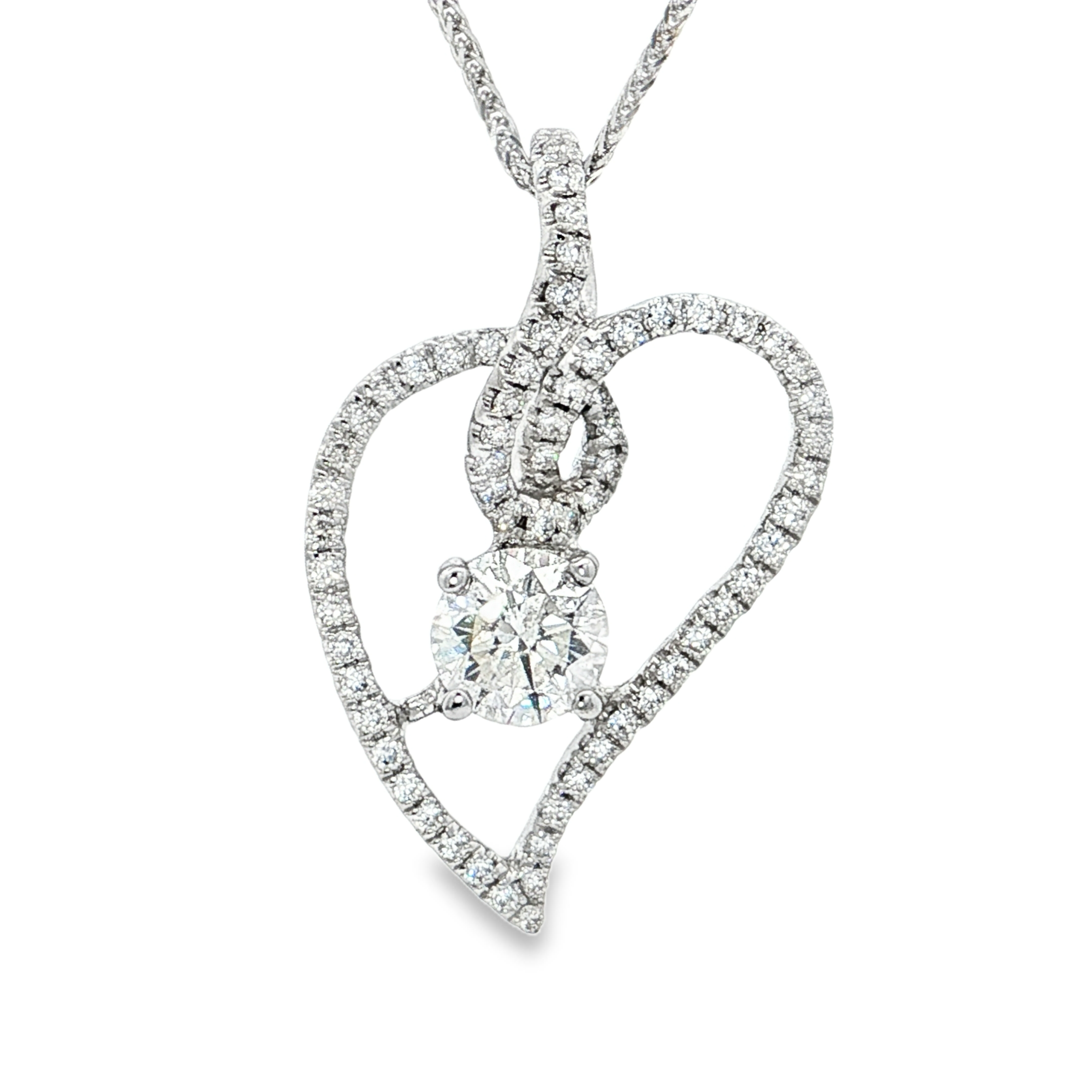 這款精緻的鑽石項鍊採用優雅的18K白金打造,呈現心形設計,散發出浪漫氣息。項鍊中央鑲嵌一顆明亮式切割的圓形鑽石,光芒四射,璀璨奪目。簡約而精緻的設計,完美襯托女性的頸部線條,是日常穿搭或特殊場合的理想之選。