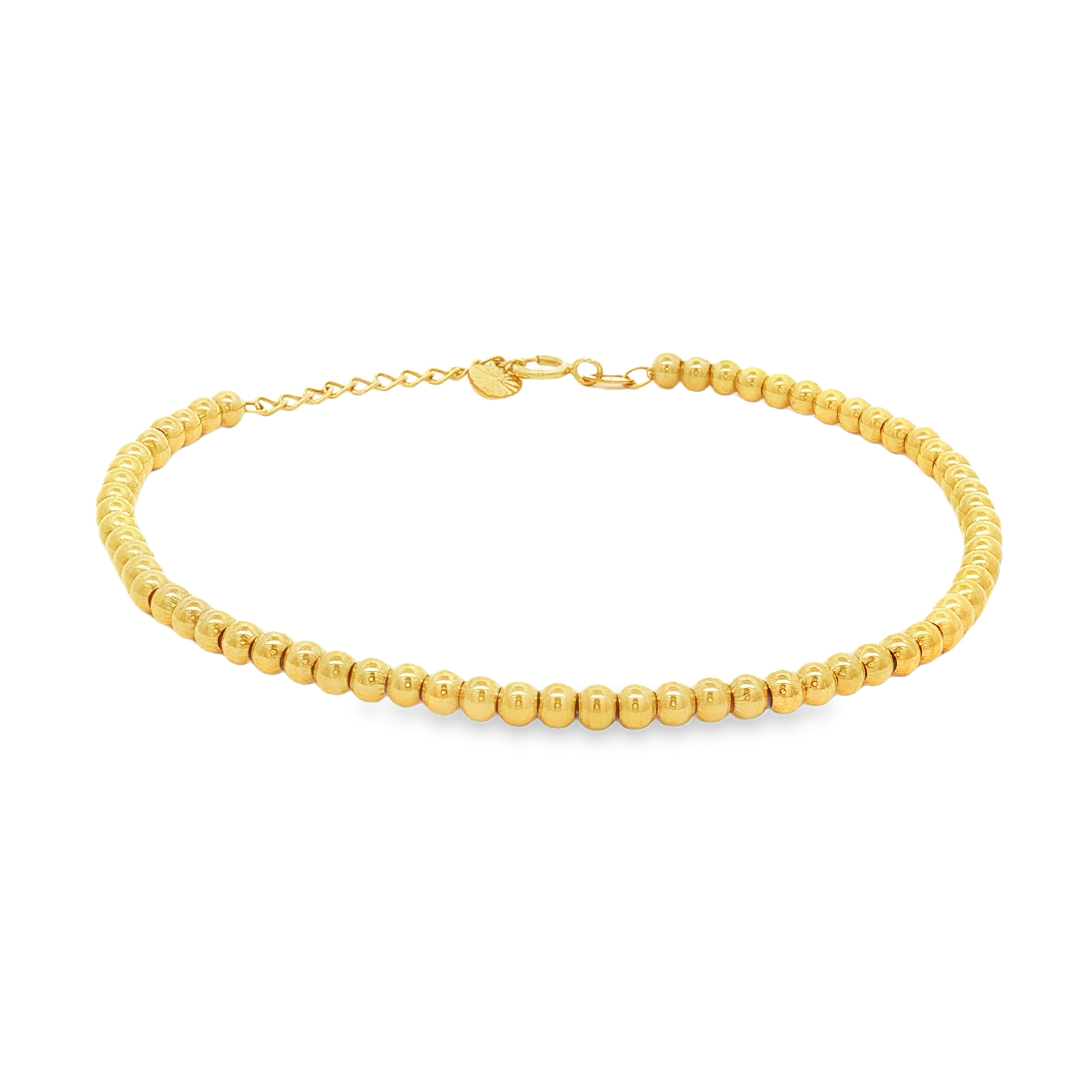 這款精緻的18K黃金串珠手鍊,以其簡約的設計和溫潤的光澤,為您的手腕增添一抹優雅氣息。圓潤的珠子串聯而成,線條流暢,佩戴舒適,適合日常穿搭,展現您的個人品味。