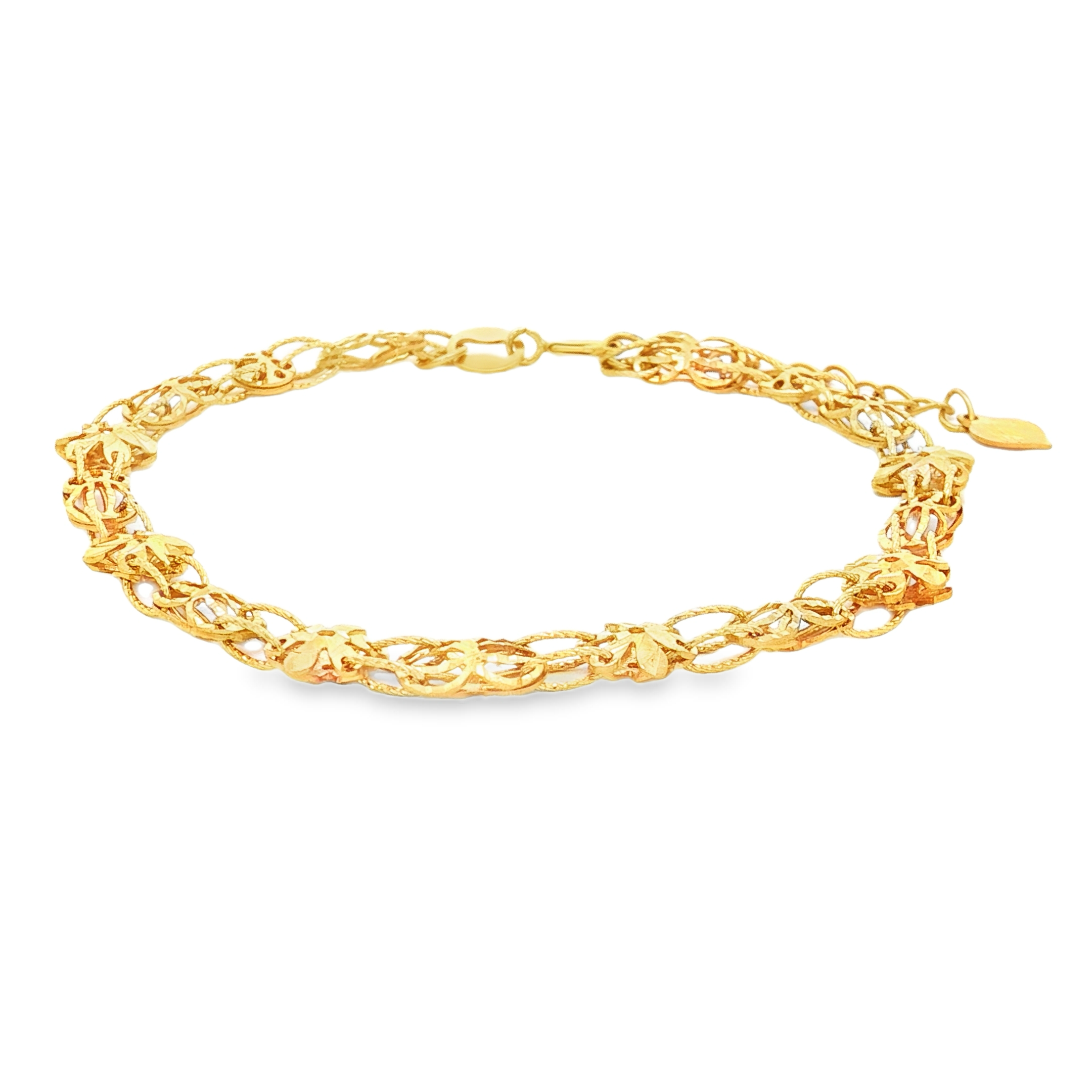 這款精緻的18K黃金手鍊,以其精巧的鏈條設計展現優雅風格。採用高品質黃金打造,鏈條的每個環節都經過精心打磨,呈現出流暢的光澤。適合日常佩戴,也能為特殊場合增添亮點,是展現個人品味的理想之選。