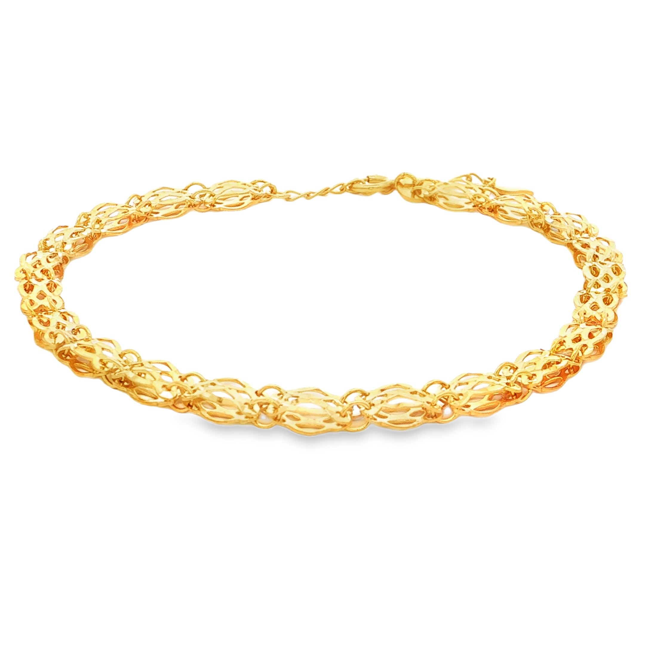 這款精緻的18K黃金手鍊採用經典的鏈條設計,每個鏈節都經過精心製作,呈現出流暢而優雅的線條。黃金材質散發著溫潤的光澤,為您的手腕增添一抹奢華感。適合日常佩戴,也可用於搭配晚禮服,展現您的獨特品味。