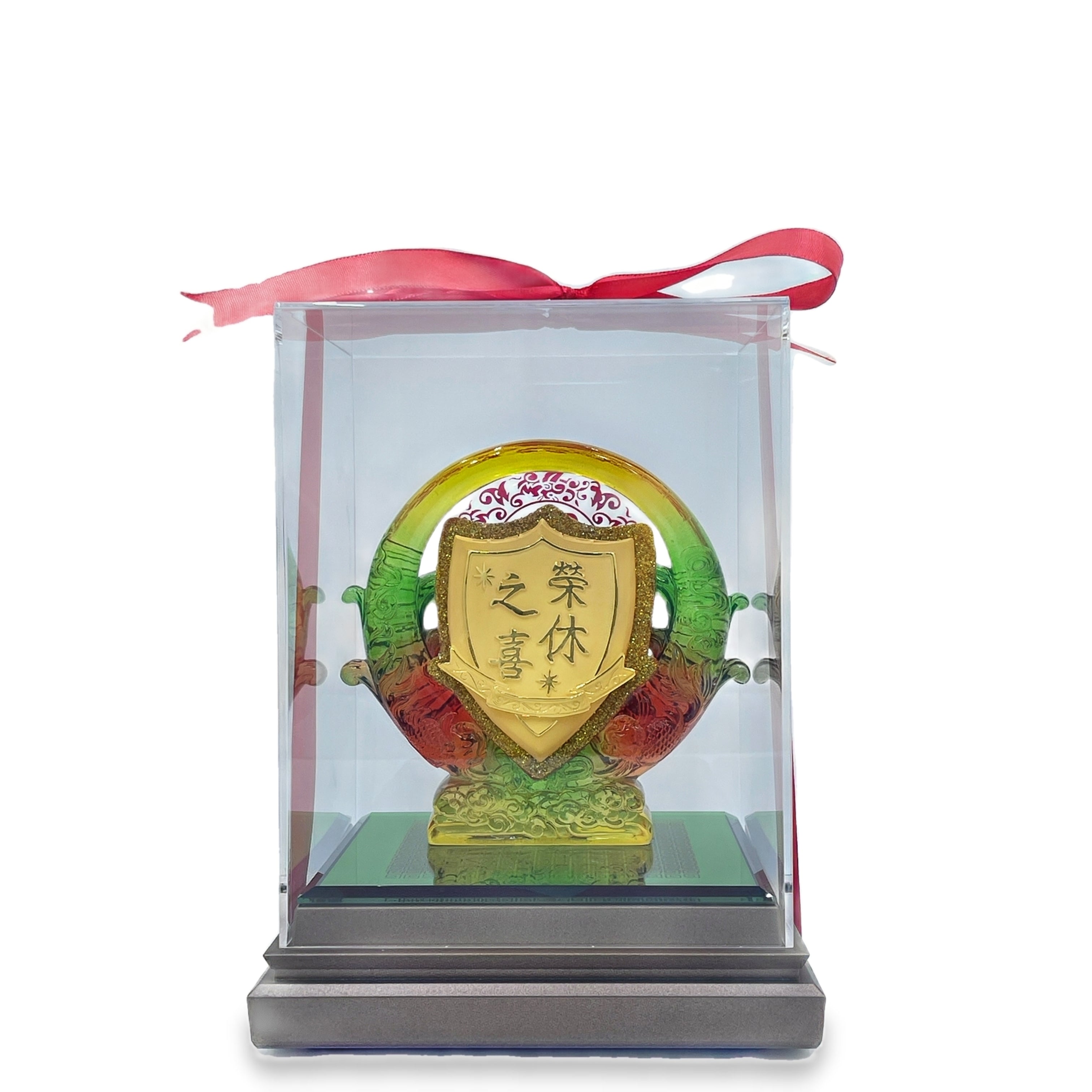 這款精美的榮休紀念擺件,以其獨特的設計和精湛的工藝,展現了對榮譽退休的崇高敬意。擺件整體造型典雅大方,色彩搭配和諧,寓意著豐收與喜悅。精緻的底座穩固而富有質感,為這份珍貴的紀念品增添了幾分莊重。無論是作為個人收藏,還是贈予親友,都是一份充滿意義的禮物。