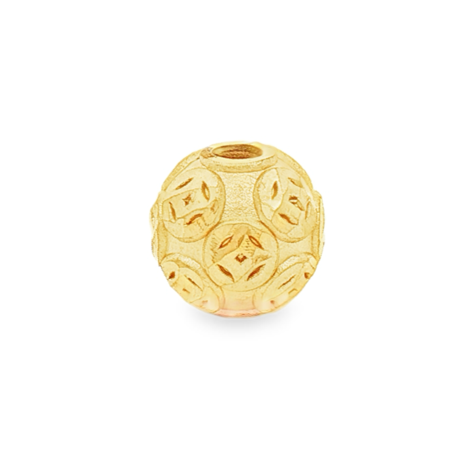 這款精緻的黃金串飾,以其獨特的球形設計和精湛的雕刻工藝脫穎而出。吊墜表面裝飾有傳統圖案,寓意吉祥,為佩戴者增添一份優雅與祝福。適合日常佩戴,也適合作為禮物贈送。
