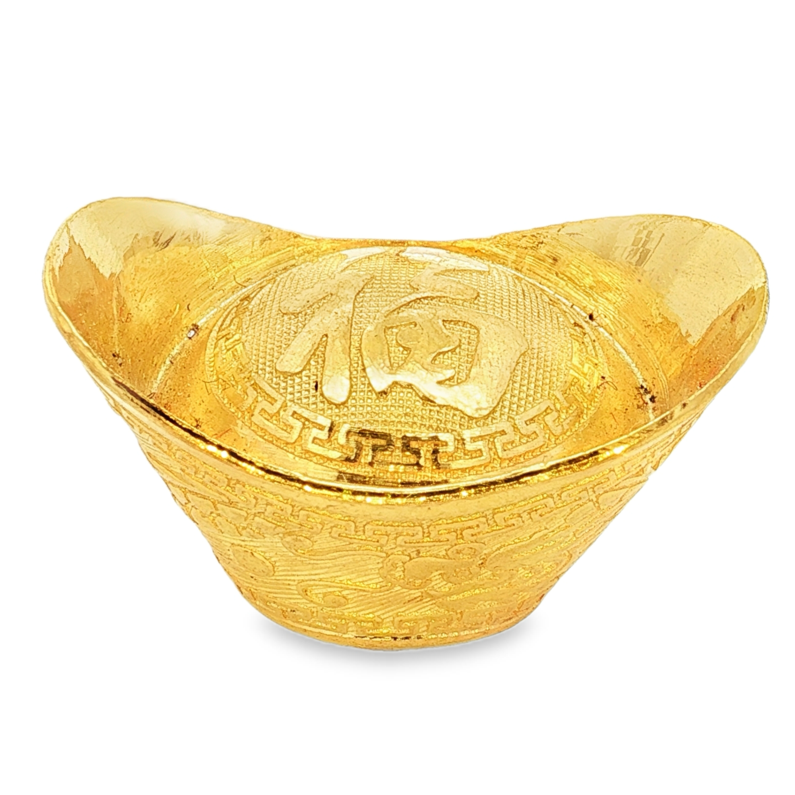 此款精緻的金元寶擺件,採用優質黃金打造,色澤飽滿,光彩奪目。元寶造型飽滿,寓意財源廣進,福氣滿滿。表面精雕細琢,刻有吉祥圖案,更添文化韻味。無論是居家擺設,還是商務饋贈,皆為上佳之選,彰顯品味與祝福。