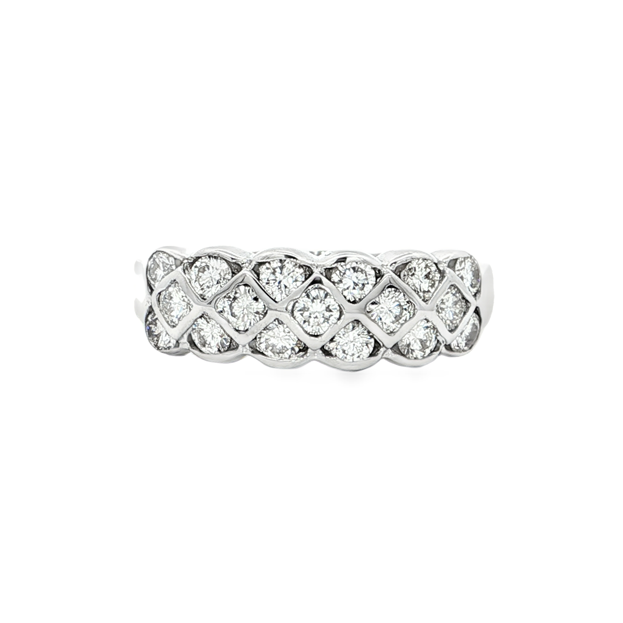 這款多石戒指採用優雅的設計,以18K金為基底,鑲嵌多顆圓形明亮式切割鑽石,散發出耀眼的光芒。戒指採用精湛的切割工藝,呈現出完美的比例和對稱性,確保每一顆鑽石都能夠充分展現其火彩和閃耀度。簡約而精緻的設計,適合日常佩戴,為您的造型增添一抹優雅的光彩。