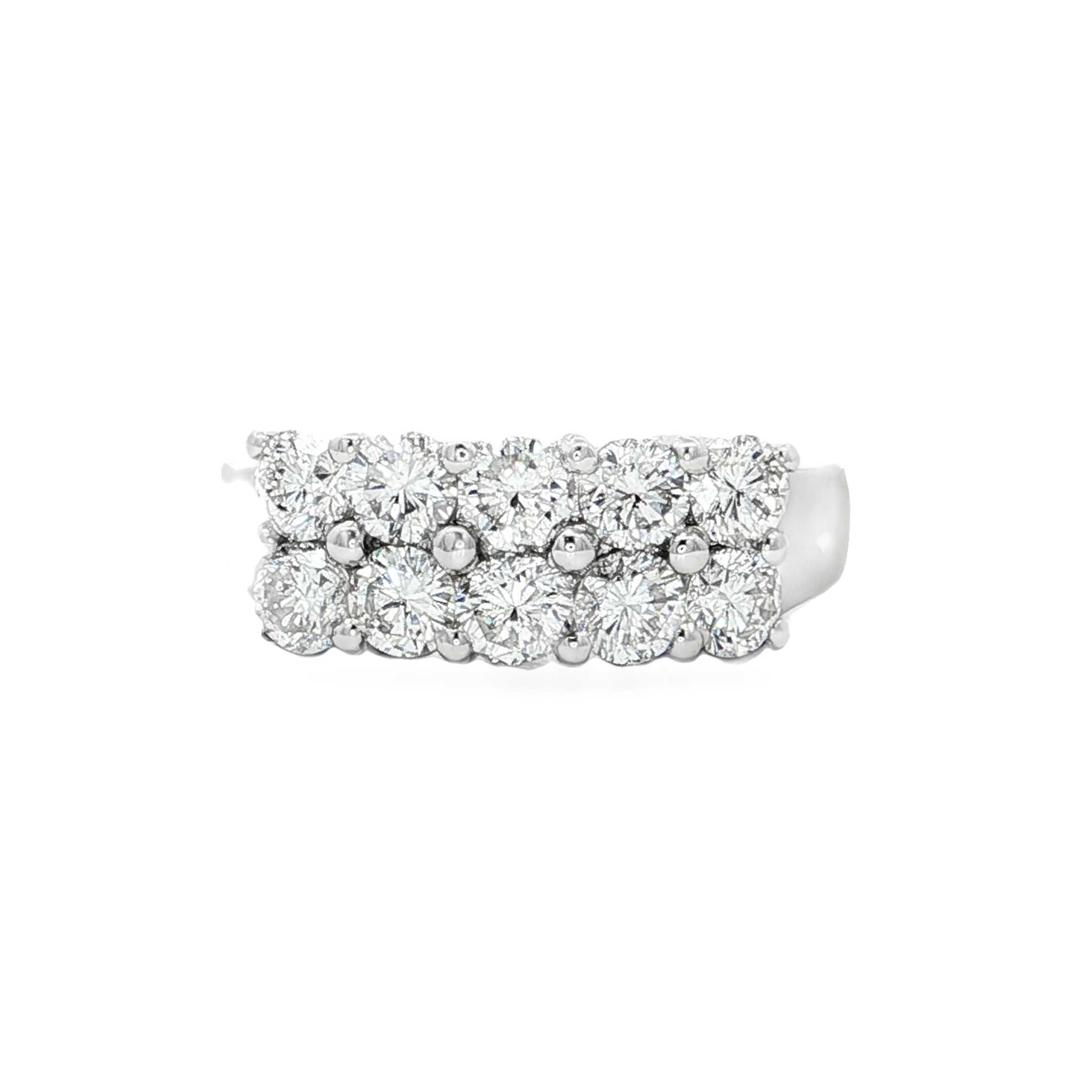 這款精美的多石戒指採用18K金打造,呈現出簡潔優雅的白色金光澤。戒指正面鑲嵌多顆圓形明亮式切割的鑽石,鑽石閃耀奪目,光芒四射。此戒指設計精巧,適合日常佩戴,亦可為特殊場合增添亮點,盡顯佩戴者的高雅品味。