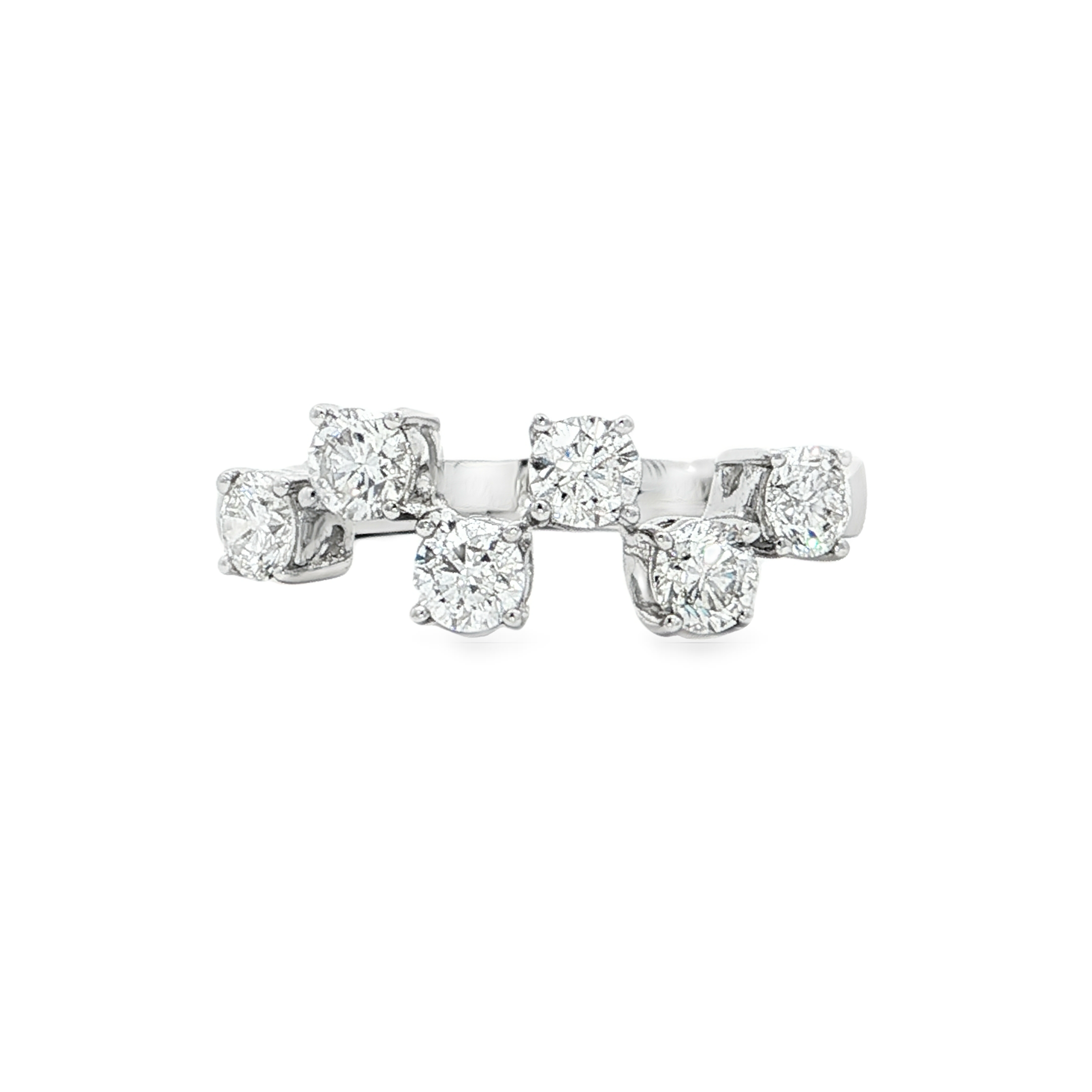 這款多石戒指採用優雅的18K金打造,鑲嵌多顆圓形明亮式切割鑽石,閃耀奪目光芒。簡約的設計突顯鑽石的璀璨,適合日常佩戴,展現您的優雅品味。白金材質更增添了戒指的現代感和奢華感。