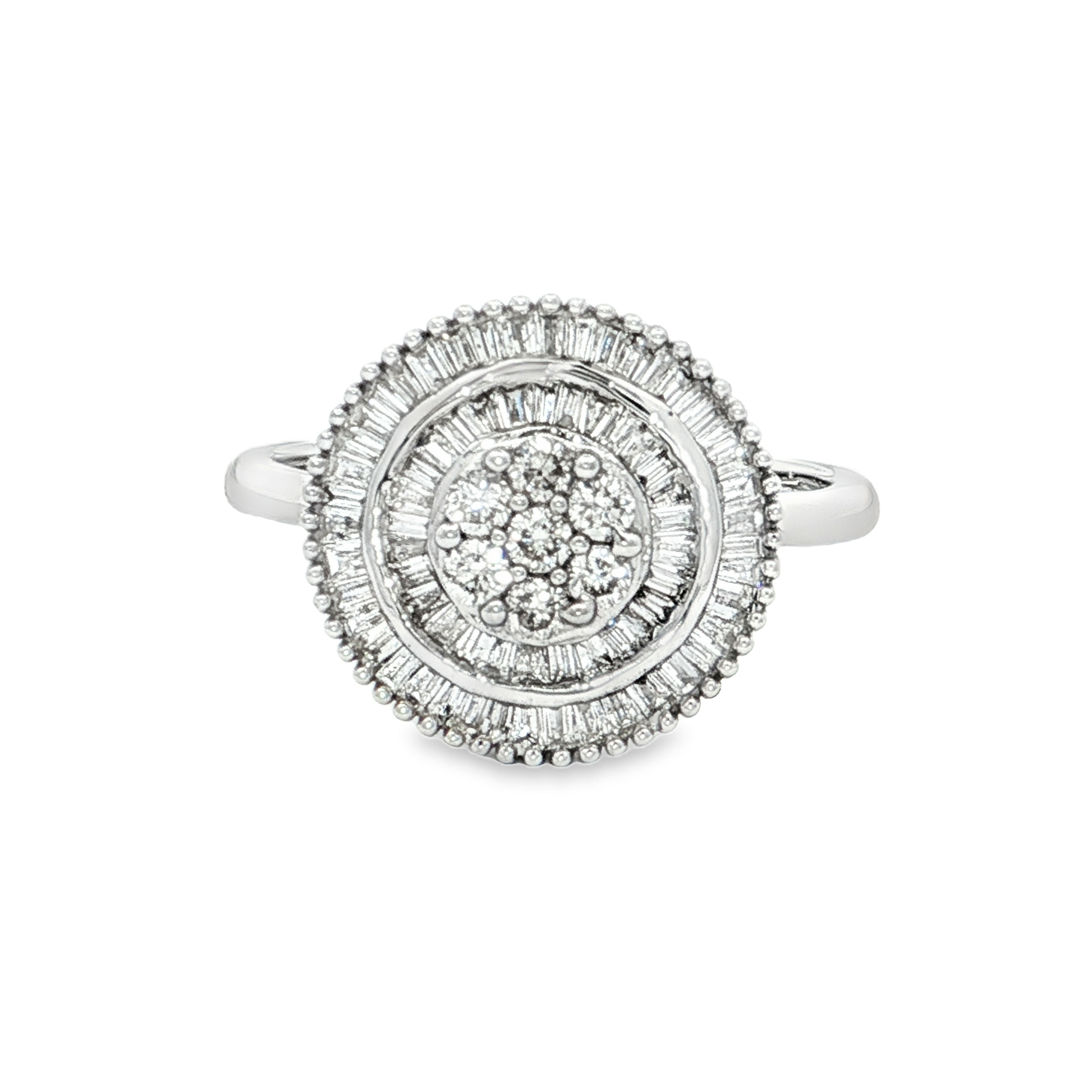這款多石戒指採用精緻的18K金打造,散發出永恆的優雅氣息。戒指鑲嵌多顆圓形明亮式切割鑽石,完美呈現鑽石的璀璨光芒。白金的冷豔光澤與鑽石的閃耀相互輝映,更顯高貴氣質。戒指設計經典大方,適合各種場合佩戴,是您珠寶盒中不可或缺的珍品。
