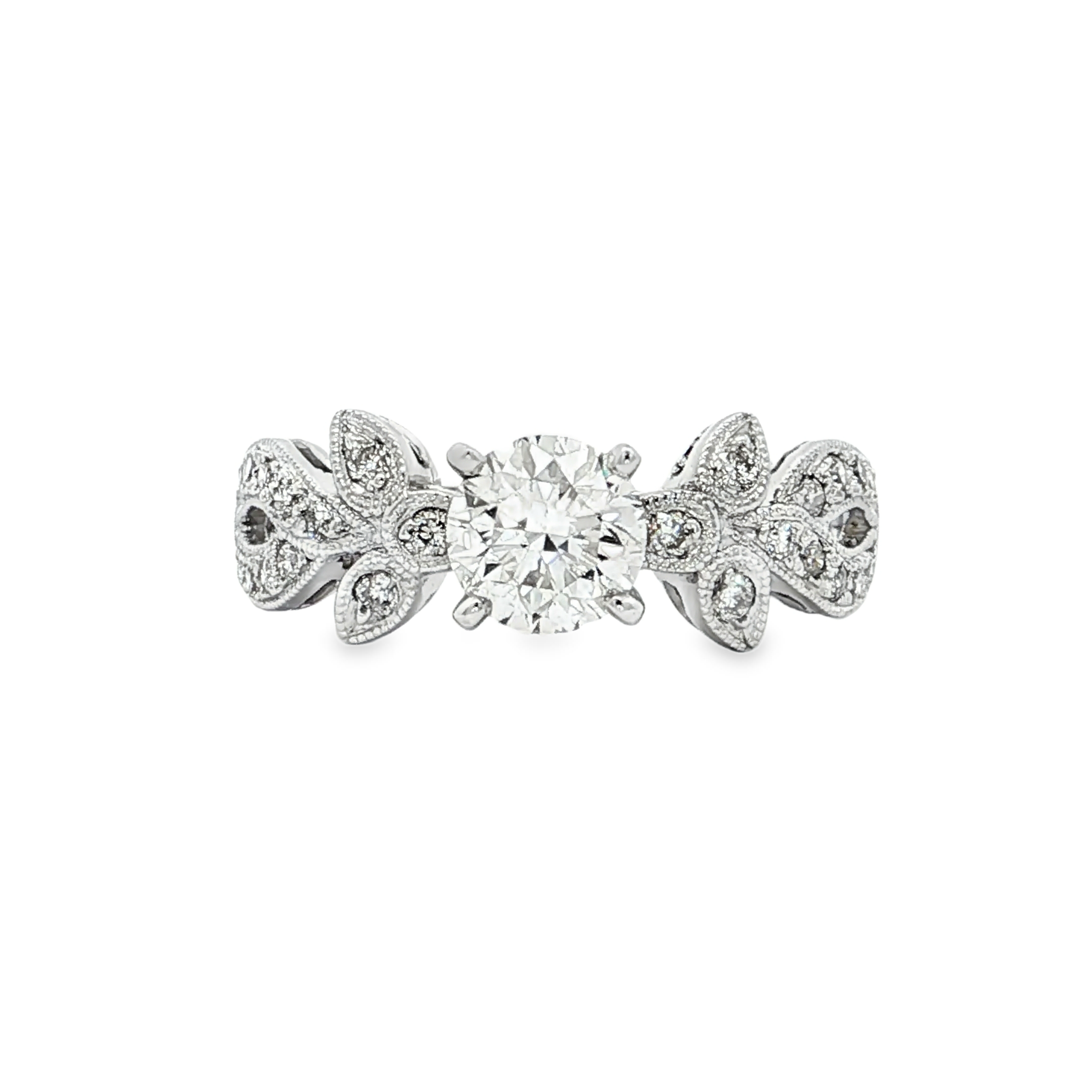 這款精緻的18K金訂婚戒指,採用經典的白色黃金配色,散發著永恆的優雅氣息。戒指中央鑲嵌一顆明亮式切割的圓形鑽石,光芒四射,完美展現鑽石的璀璨。其精湛的切割工藝和卓越的拋光,確保了鑽石的極致光彩和火彩,是愛情的完美象徵。