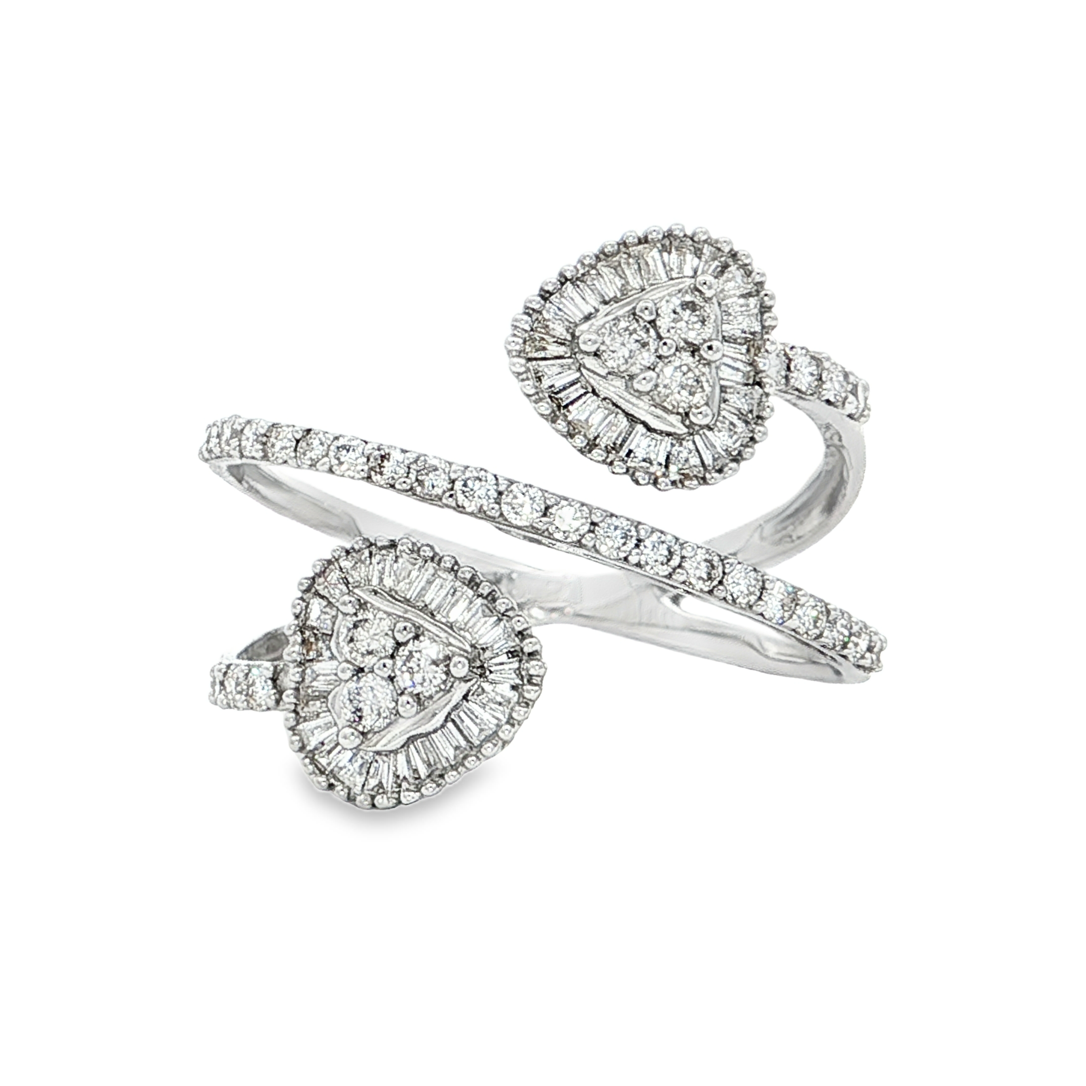 這款精美的多石戒指採用優雅的白K金。戒指正面呈現精緻的圓形明亮式切割鑽石,璀璨奪目。整體設計呈現出優雅的現代感,適合各種場合佩戴,盡顯您的獨特品味。