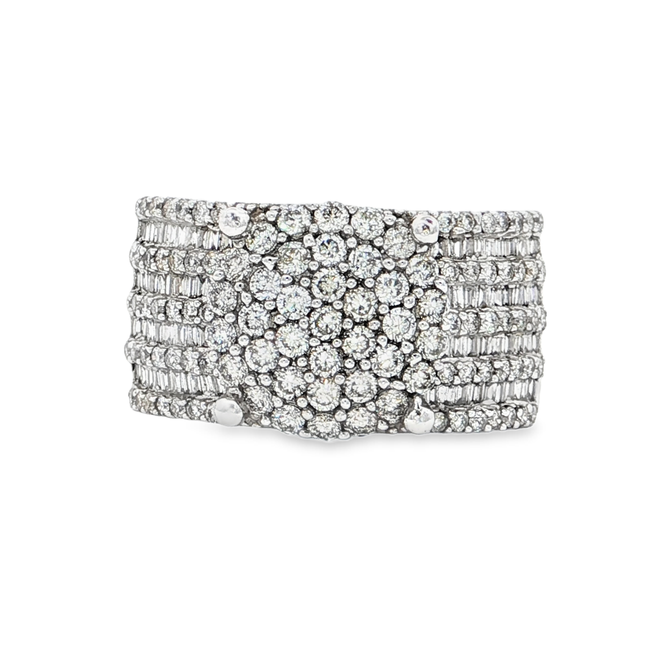 這款精美的多石戒指採用優雅的白金製成,鑲嵌著閃耀的圓形明亮式切割鑽石。鑽石以精湛的工藝排列,呈現出令人驚豔的光芒和火彩。簡約而現代的設計,無論是日常佩戴還是特殊場合,都能為您的造型增添一份奢華氣息。