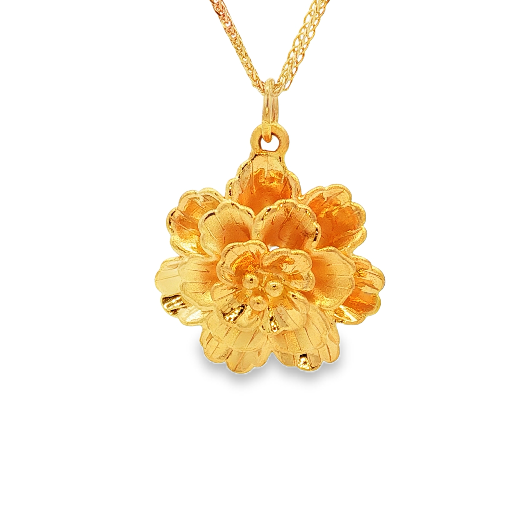 這款精美的吊墜採用999足金精製而成,呈現出精緻的花朵造型。其細膩的工藝和閃耀的金屬光澤,完美地捕捉了花朵的優雅和活力。這款吊墜是日常穿搭或特殊場合的理想之選,為您的造型增添一抹奢華和精緻。