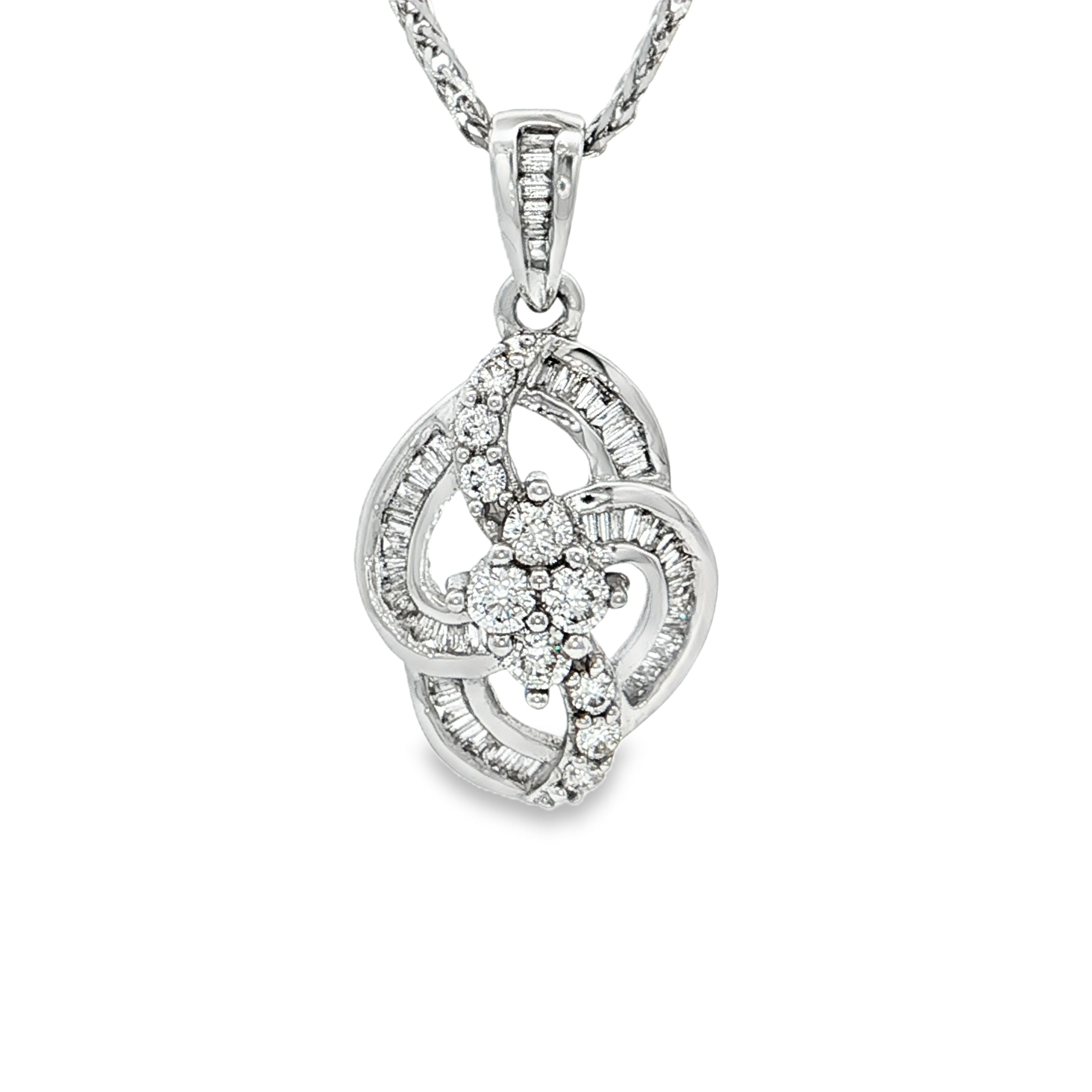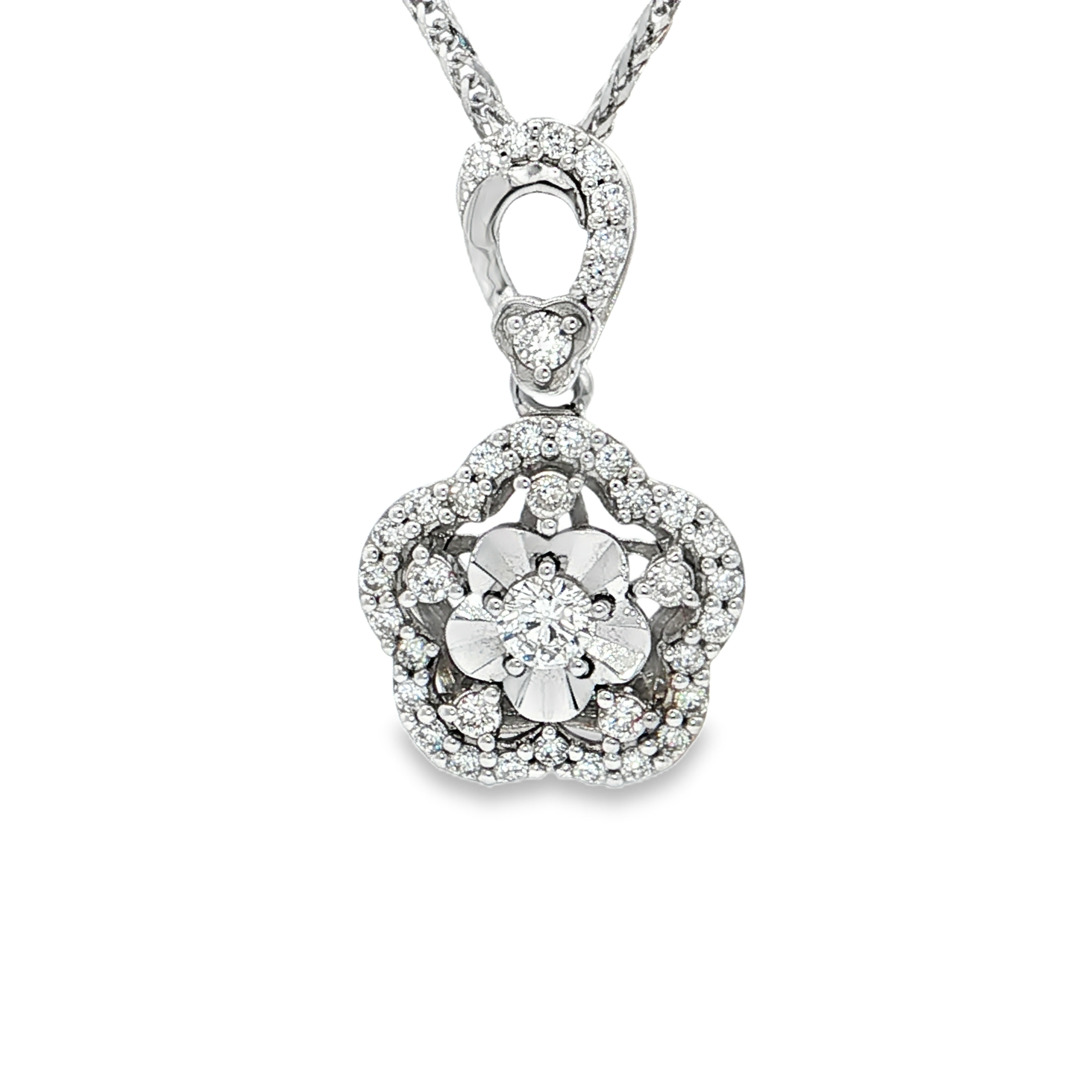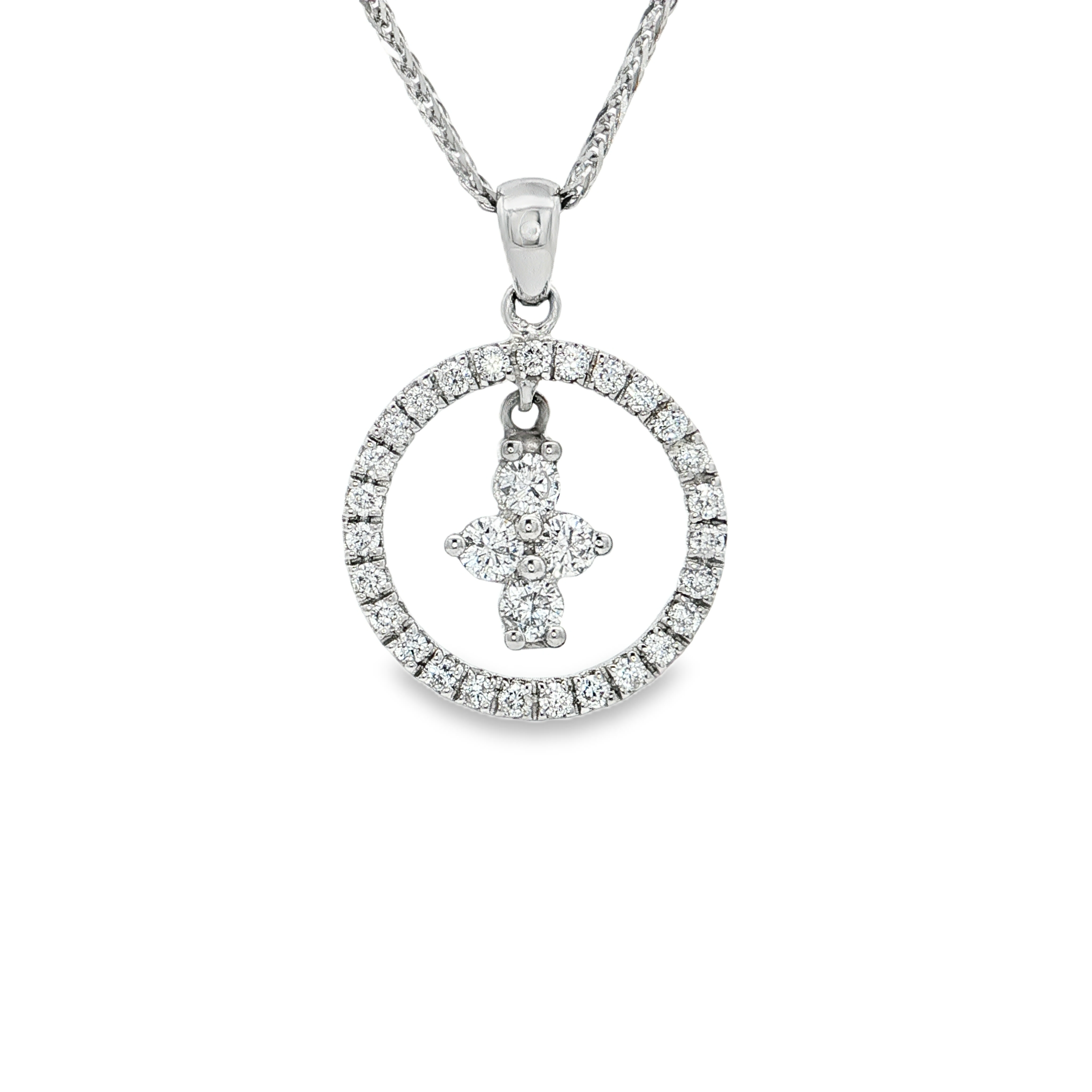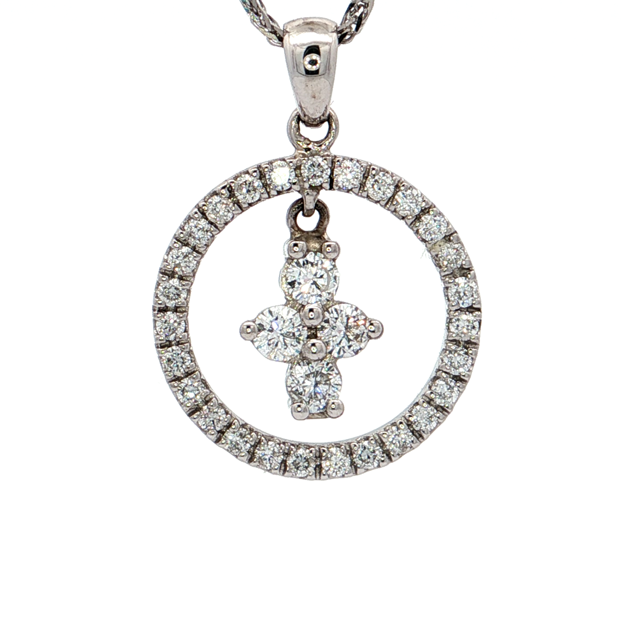18K白色黃金天然鑽石吊墜