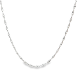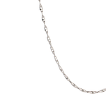 這款精緻的18K白色黃金項鍊,以其獨特的鏈條設計展現出現代優雅風格。鏈條的每一個環節都經過精心打造,呈現出流暢而富有動感的線條。白金材質的光澤為整體增添了奢華感,無論是日常穿搭還是特殊場合,都能為您的造型畫龍點睛。簡約而不失精緻,是您展現個人品味的理想之選。