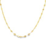 這款精緻的18K黃金鏈條項鍊,以其簡約而優雅的設計,為您的日常造型增添一抹低調奢華。鏈條由精細的黃金打造,呈現出流暢而富有光澤的質感。其纖細的鏈身設計,使其既可單獨佩戴,展現簡潔之美,亦可搭配其他吊墜,打造個性化的風格。