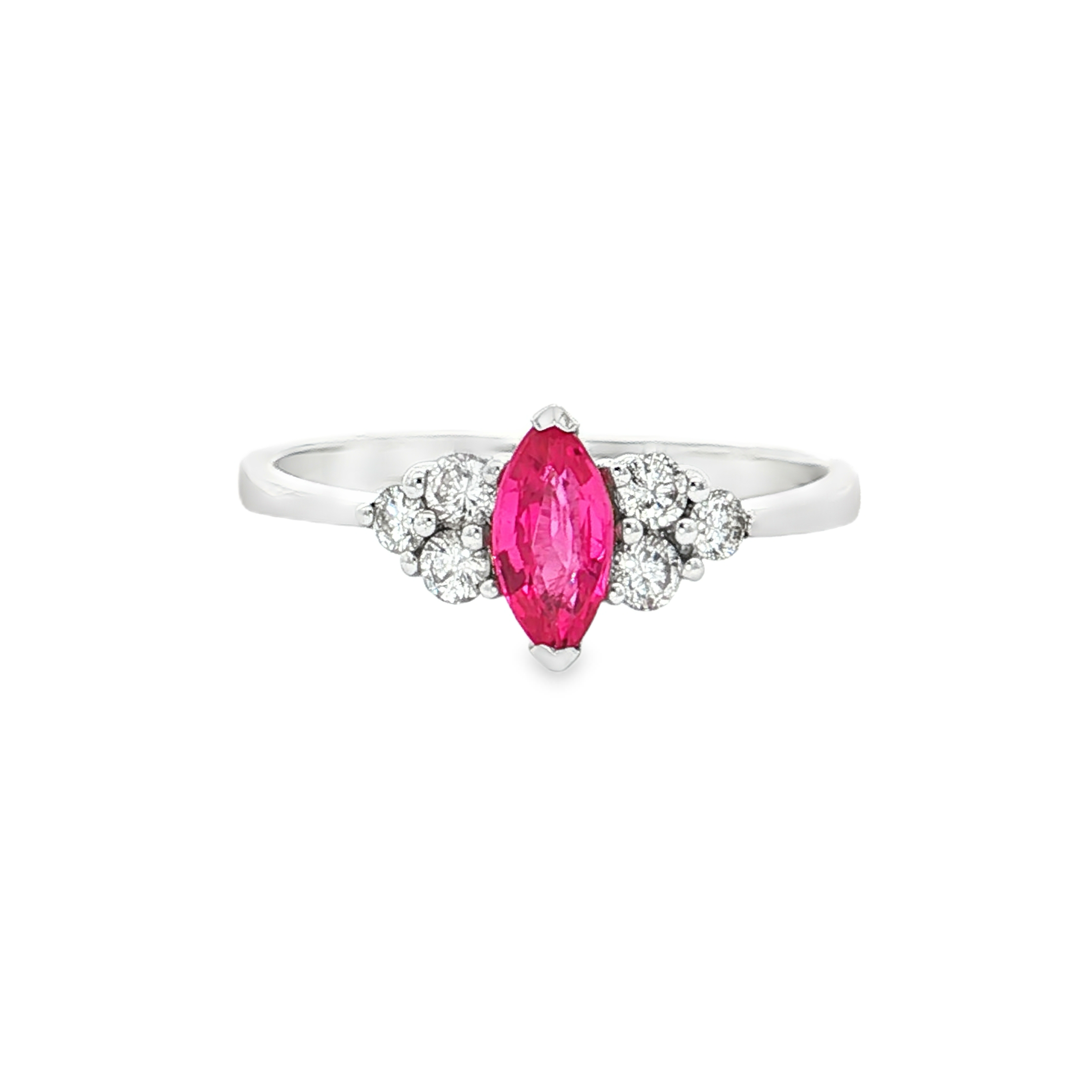 18K白色黃金天然紅寶石鑽石戒指