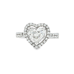 這款18K金訂婚戒指鑲嵌一顆心形明亮式切割鑽石,散發著浪漫氣息。戒指採用精緻的白色黃金底座,突顯了鑽石的璀璨光芒。心形鑽石的獨特造型,象徵著愛情的真摯與永恆,是表達愛意的完美之選。