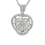 這款精緻的白色黃金心形吊墜項鍊,以18K金為基底,鑲嵌著閃耀的鑽石。心形設計搭配明亮式切割,完美展現了鑽石的光彩和火彩。項鍊整體呈現出優雅和浪漫的氛圍,是表達愛意的理想之選。
