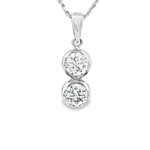 這款精緻的白金鑽石項鍊,以簡約優雅的設計凸顯鑽石的璀璨光芒。項鍊鑲嵌兩顆圓形明亮式切割鑽石,確保了極致的光線反射與火彩。18K金質底座增添了現代感,適合日常佩戴,為您的造型增添一抹低調奢華。