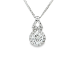 這款精緻的鑽石項鍊以18K金為基底,並鍍上優雅的白金光澤。主鑽採用經典的圓形明亮式切割,綻放出耀眼的光芒。項鍊的設計簡約而優雅,適合日常佩戴,也能為特殊場合增添亮點。璀璨的鑽石與精湛的工藝相結合,展現出獨特的魅力與品味。