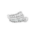 這款精緻的戒指採用18K金屬材質,並以亮麗的白金鍍層增添光彩。吊墜正面鑲嵌著長方形切割的鑽石,以階梯式切割呈現,確保卓越的亮度和火彩。鑽石的透明度和無瑕度,彰顯其優越的品質,是追求精緻與獨特風格的您的理想之選。