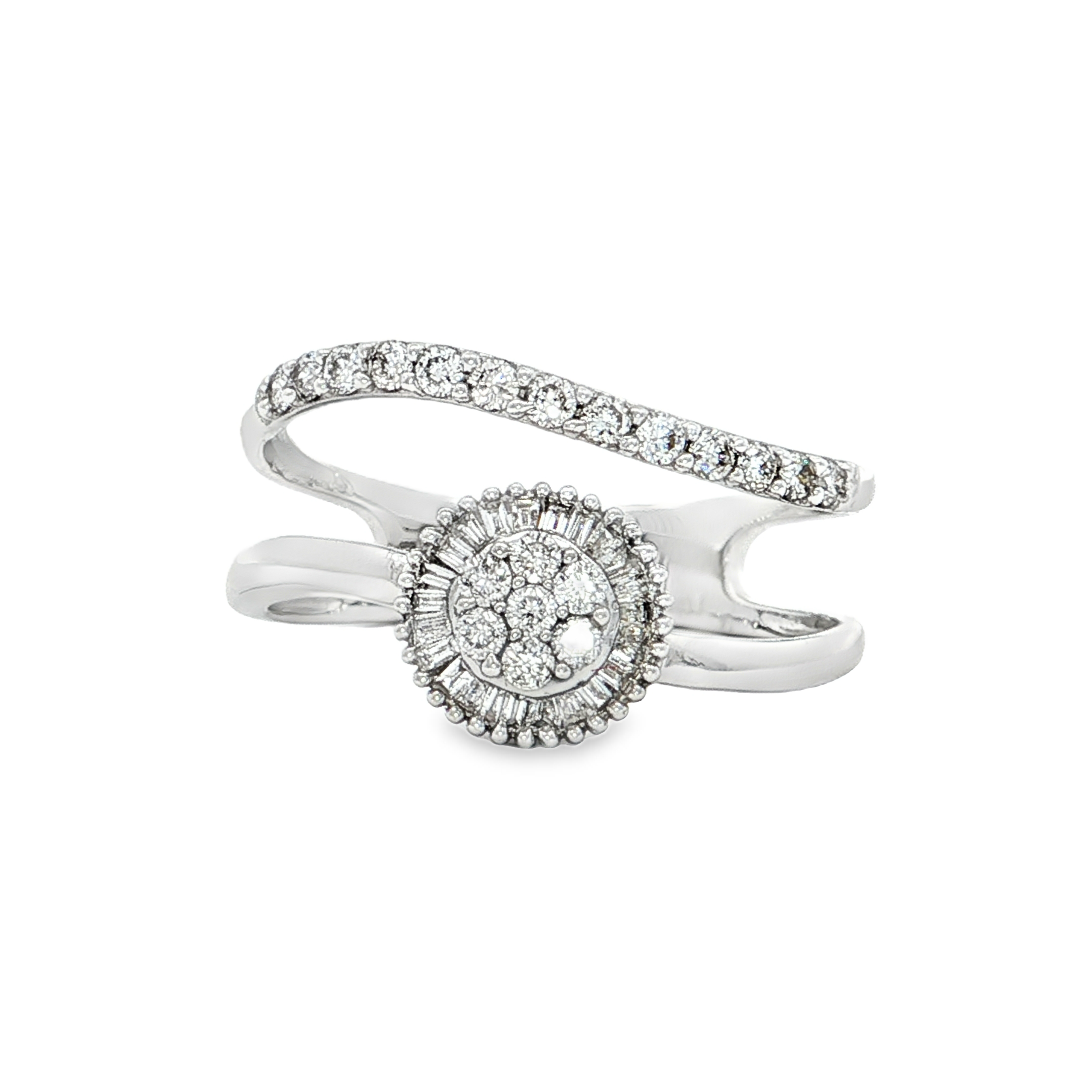 這款精美的多石戒指以優質18K為基底,搭配閃耀的白色黃金,呈現出高雅的氣質。戒指上鑲嵌著多顆圓形明亮式切割的鑽石,完美展現了鑽石的璀璨光芒。整體設計精巧細緻,適合各種場合佩戴,為您的造型增添一抹奢華氣息。