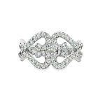 這款多石戒指採用優質18K金打造,呈現出精緻的白色黃金光澤。戒指正面朝上,水平放置,設計精巧,展現出完美的對稱感。戒指上鑲嵌著多顆圓形明亮式切割的鑽石,每一顆都經過精心挑選,確保具有卓越的切工、拋光和對稱性,從而散發出耀眼的光芒。