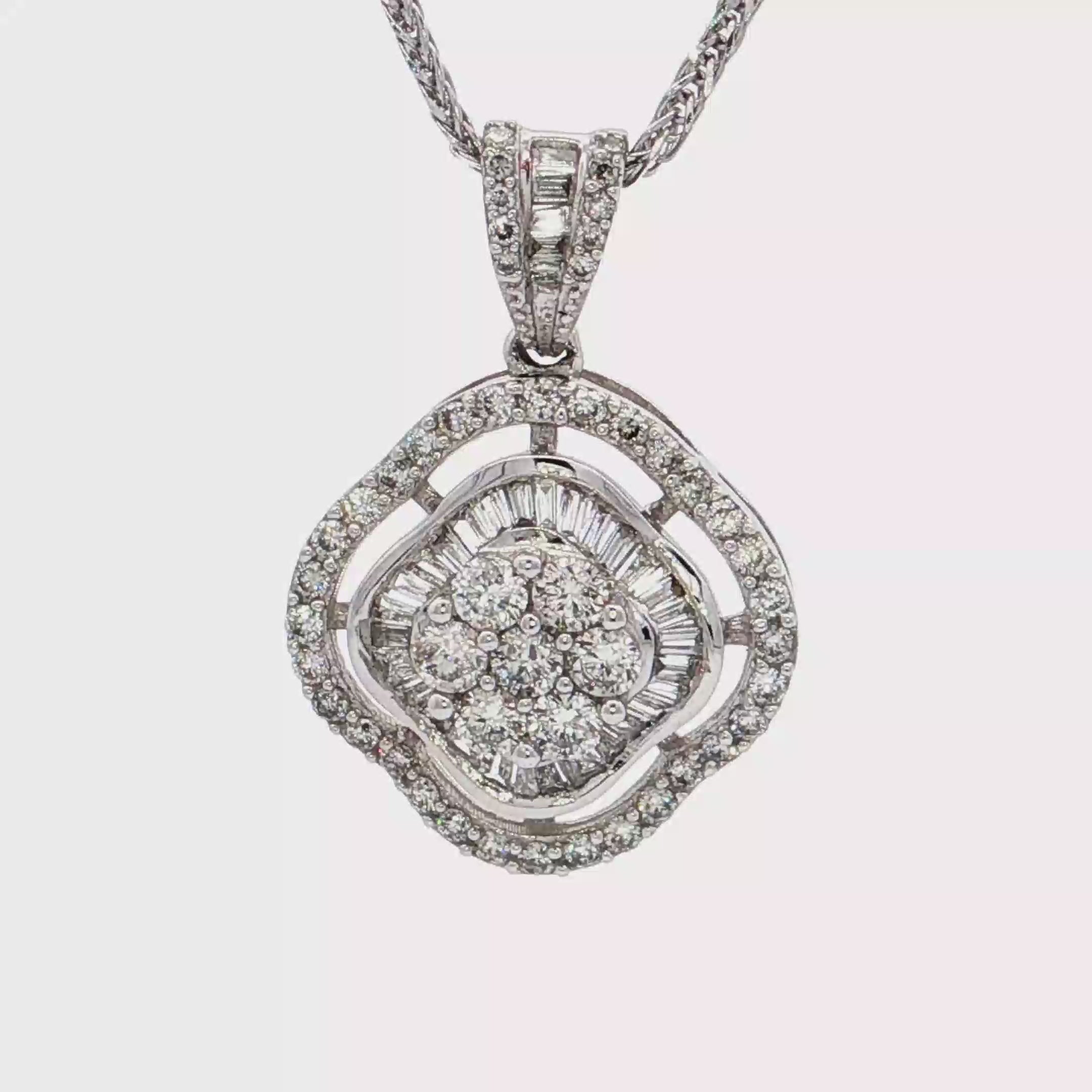 這款精緻的鑽石項鍊,以18K金打造,呈現出優雅的白色金屬光澤。項鍊中央鑲嵌著多顆圓形明亮式切割的鑽石,璀璨奪目。鑽石的精湛切割工藝,使光線得以充分折射,綻放出耀眼的光芒,盡顯奢華品味。整體設計簡約而不失精緻,適合各種場合佩戴,為您的造型增添一份優雅與自信。