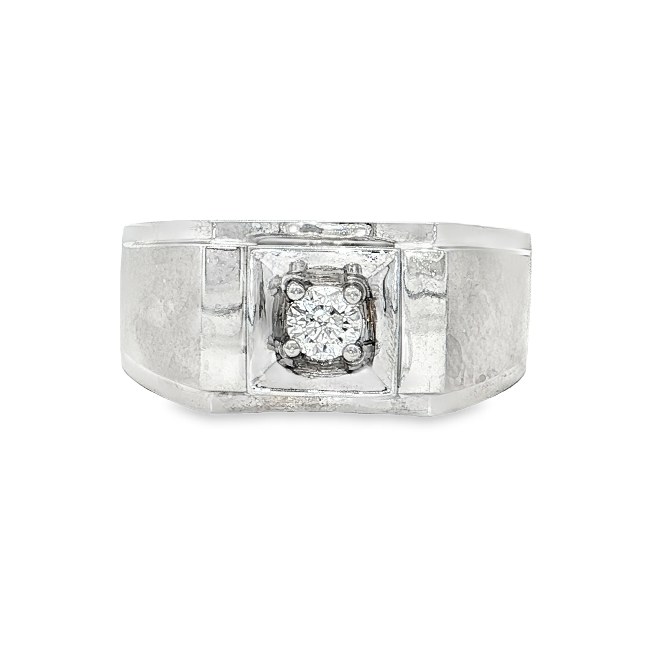 這款精美的印章戒指採用拋光18K製成,呈現出簡潔而現代的設計。戒指中央鑲嵌一顆圓形明亮式切割鑽石,為這款經典配飾增添了一絲奢華感。白金的色澤增強了鑽石的光彩,使其成為日常佩戴或特殊場合的理想選擇。