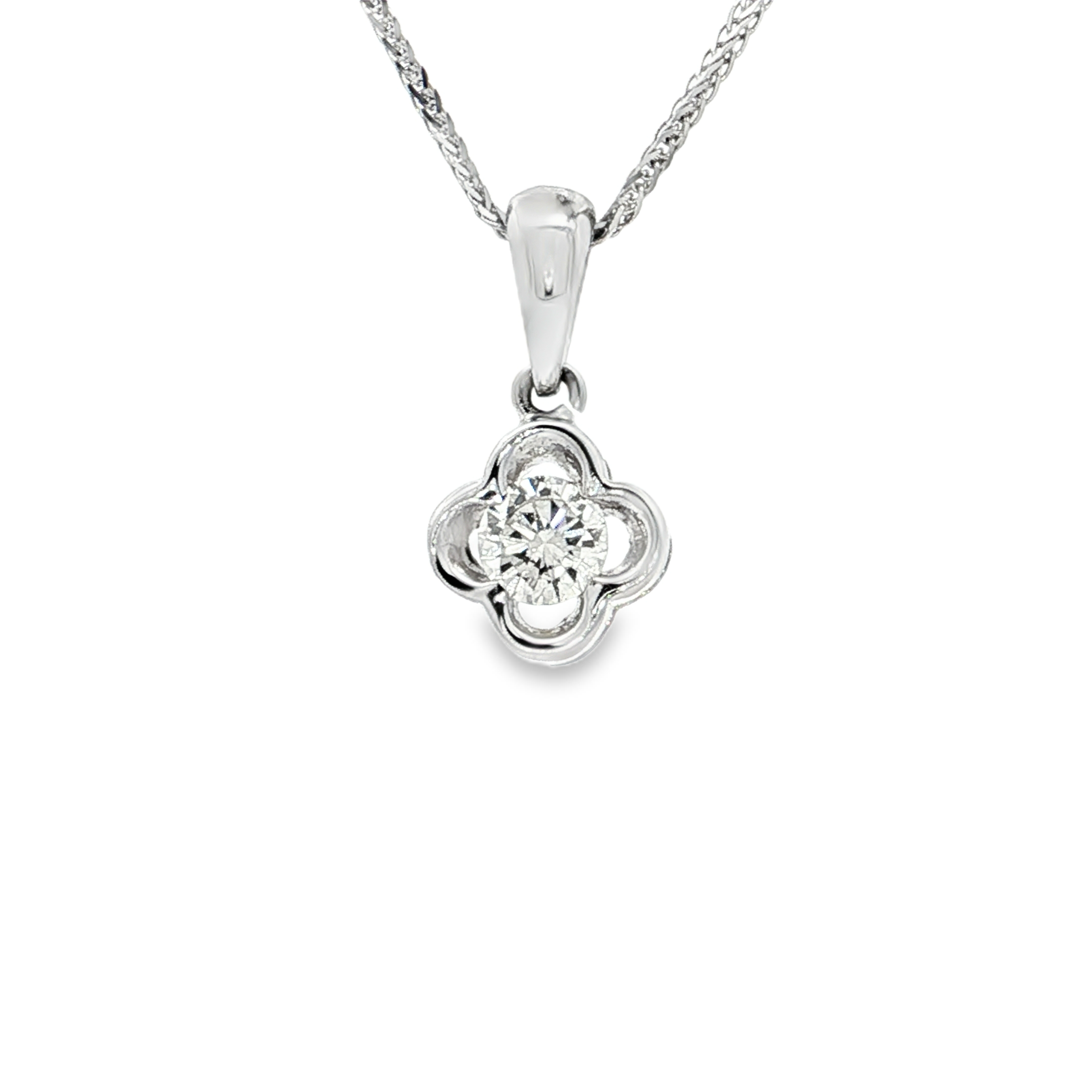 18K白色黃金天然鑽石吊墜