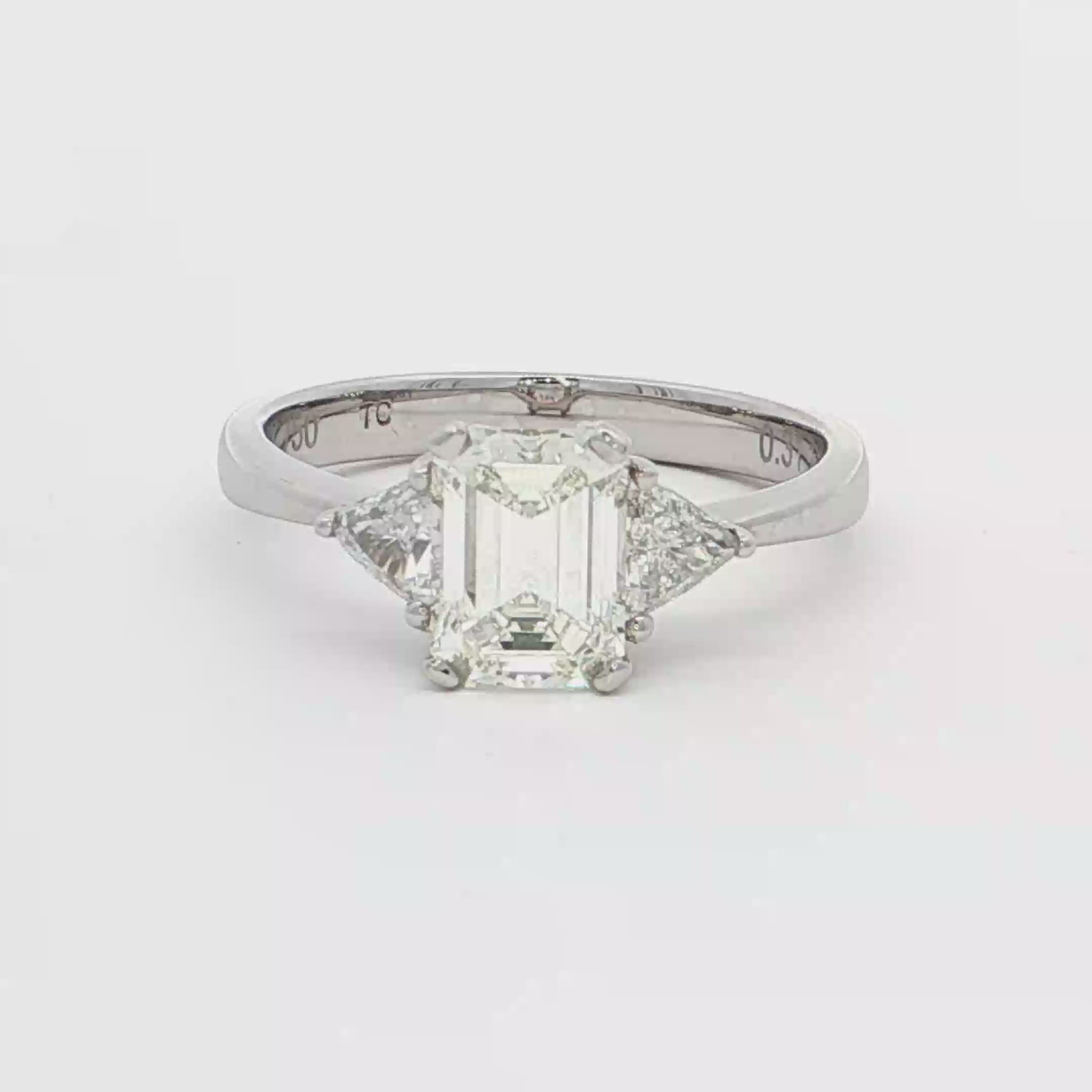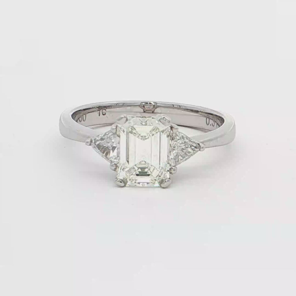這款精美的多石戒指採用優雅的白金戒托,主石為一顆迷人的祖母綠切割鑽石,以其獨特的階梯式切割工藝展現出璀璨的光芒。簡約而現代的設計風格,完美襯托出鑽石的純淨與光彩,是品味人士的理想之選。